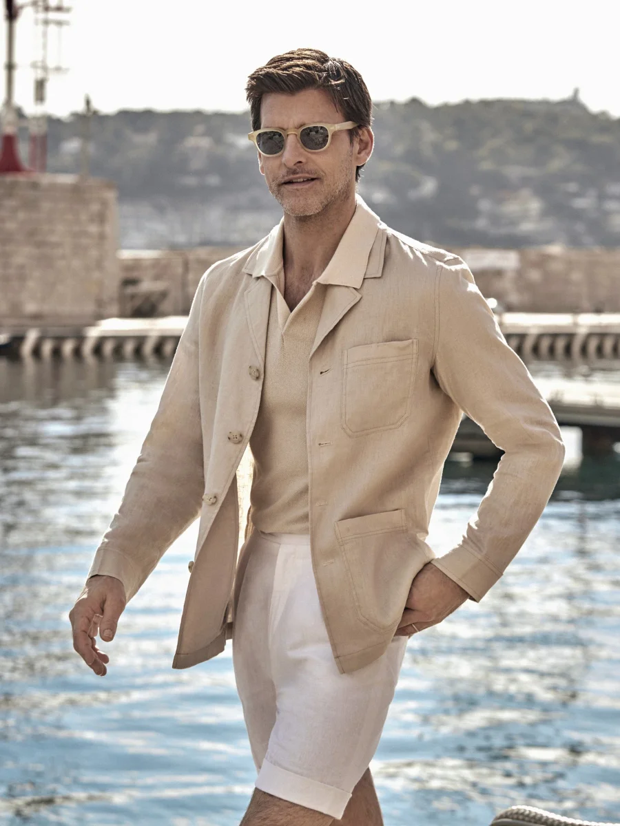Unique Linen Overshirt with Beige Pockets